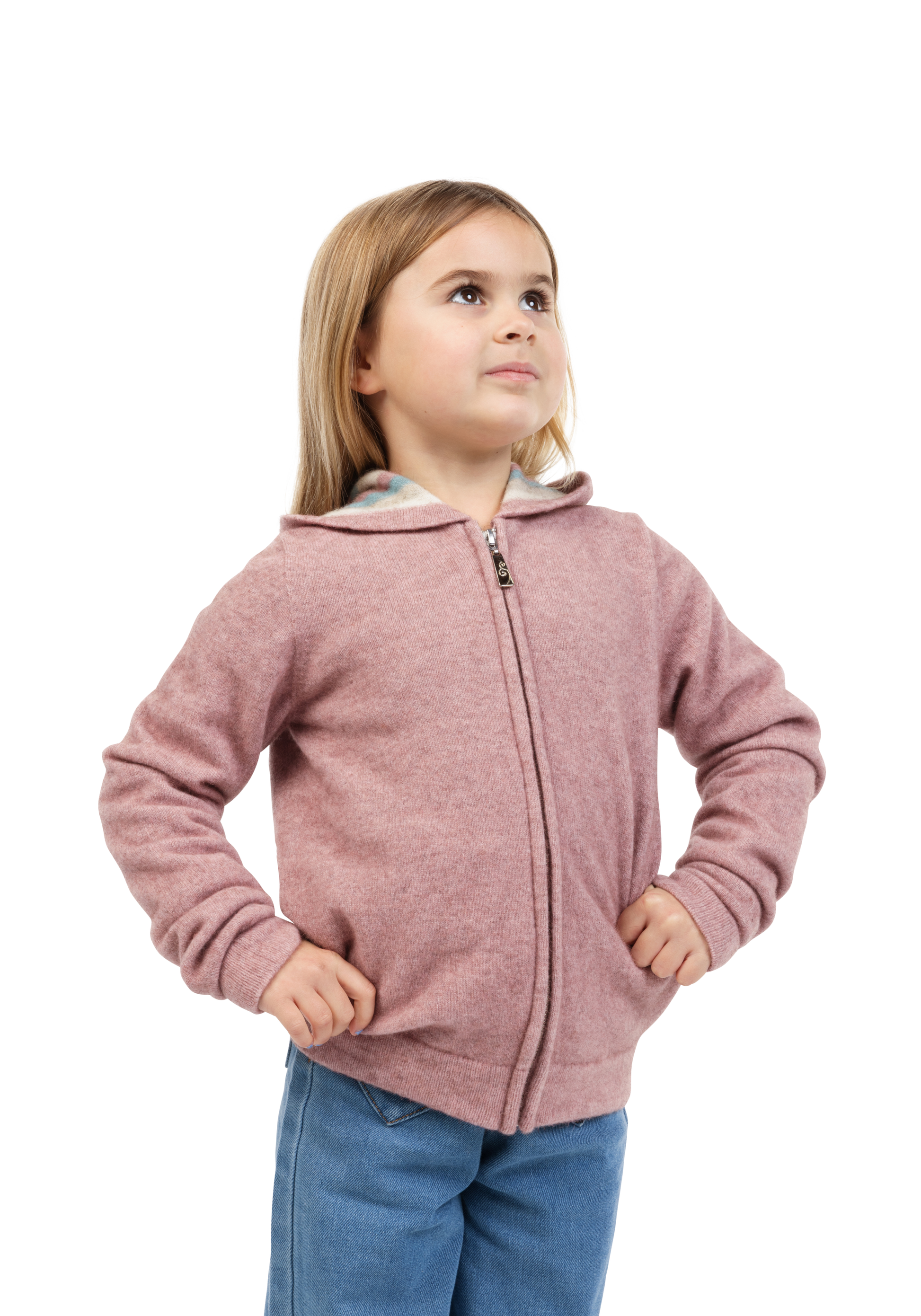 A full zip hoodie in bright, fun colours. Features a striped hood that is generous in size. This item caters to a range of children's sizes, and due to its light weight is great to wear everyday!